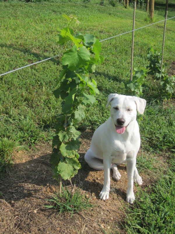 the vineyard with us and proved to be a champ at keeping birds and rabbits out of the vineyard. Not to mention, beetles. We aggressively met our one Japanese beetle infestation with a spray application and a lot of handpicking, but it turned out that the puppy also likes to help pick off the beetles, and she does so without harming the leaves. Go, Glory!