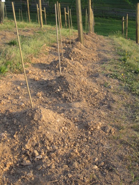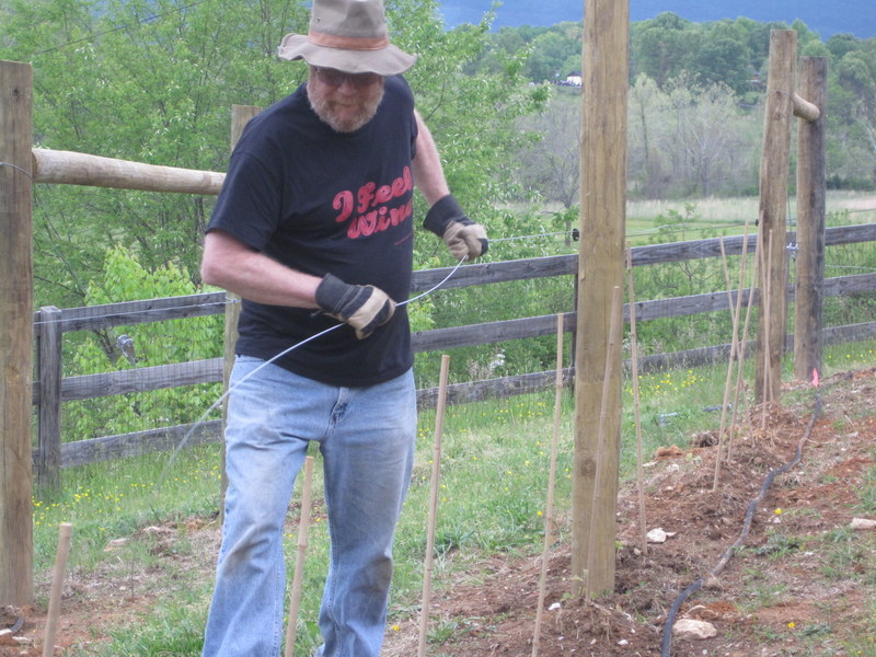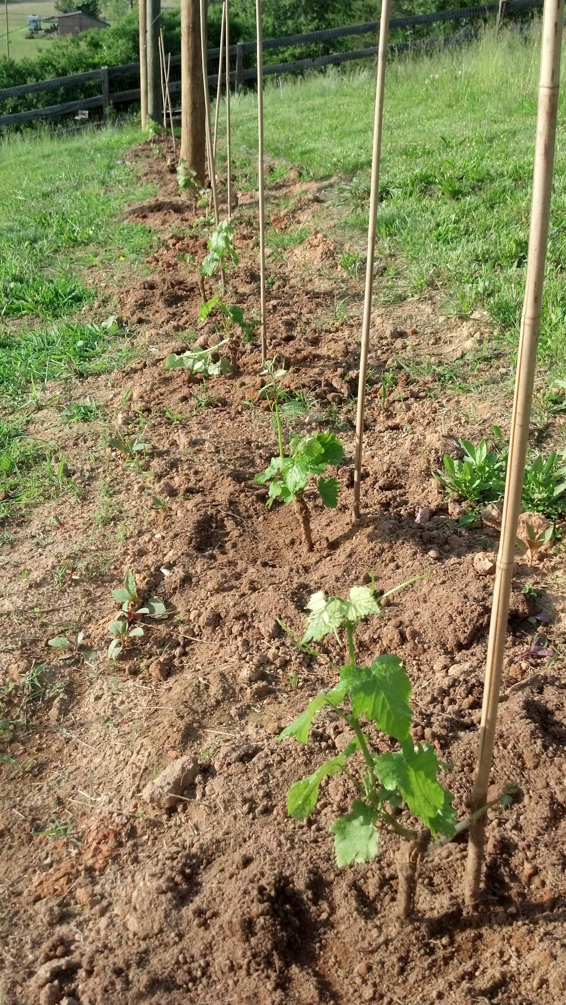 First, we decided to dispense with grow tubes for reasons that I still think made good sense. After sampling the research, we concluded that vines grown without tubes would do at least as well during the first season as those grown with tubes, and maybe better in subsequent years. Honestly, it somehow just felt right to let the vines toughen and grow at a natural pace. We also recognized that the main reason for using grow tubes was to facilitate the use of Roundup, and with only 150 vines we thought we could cultivate the rows by hand.