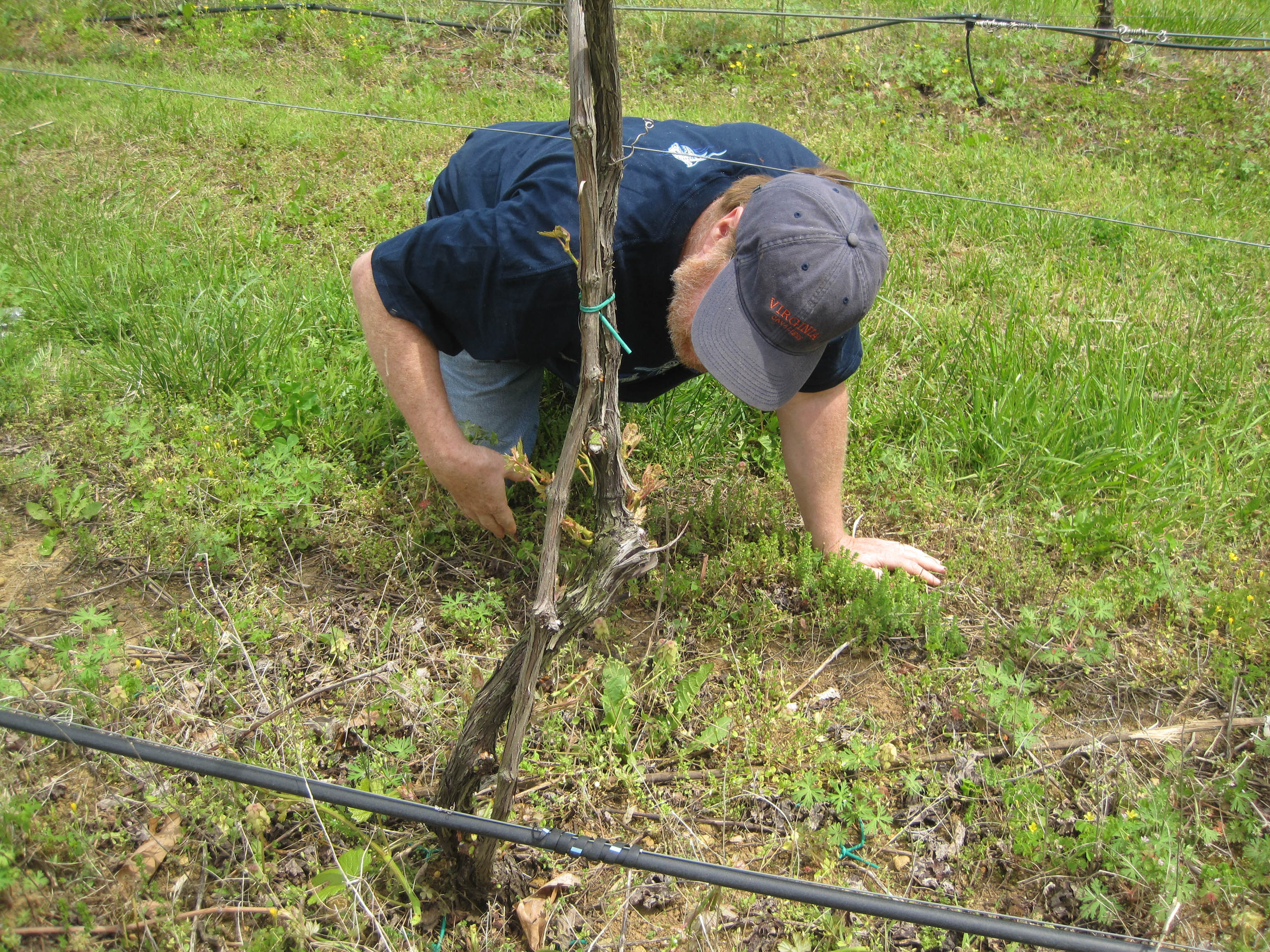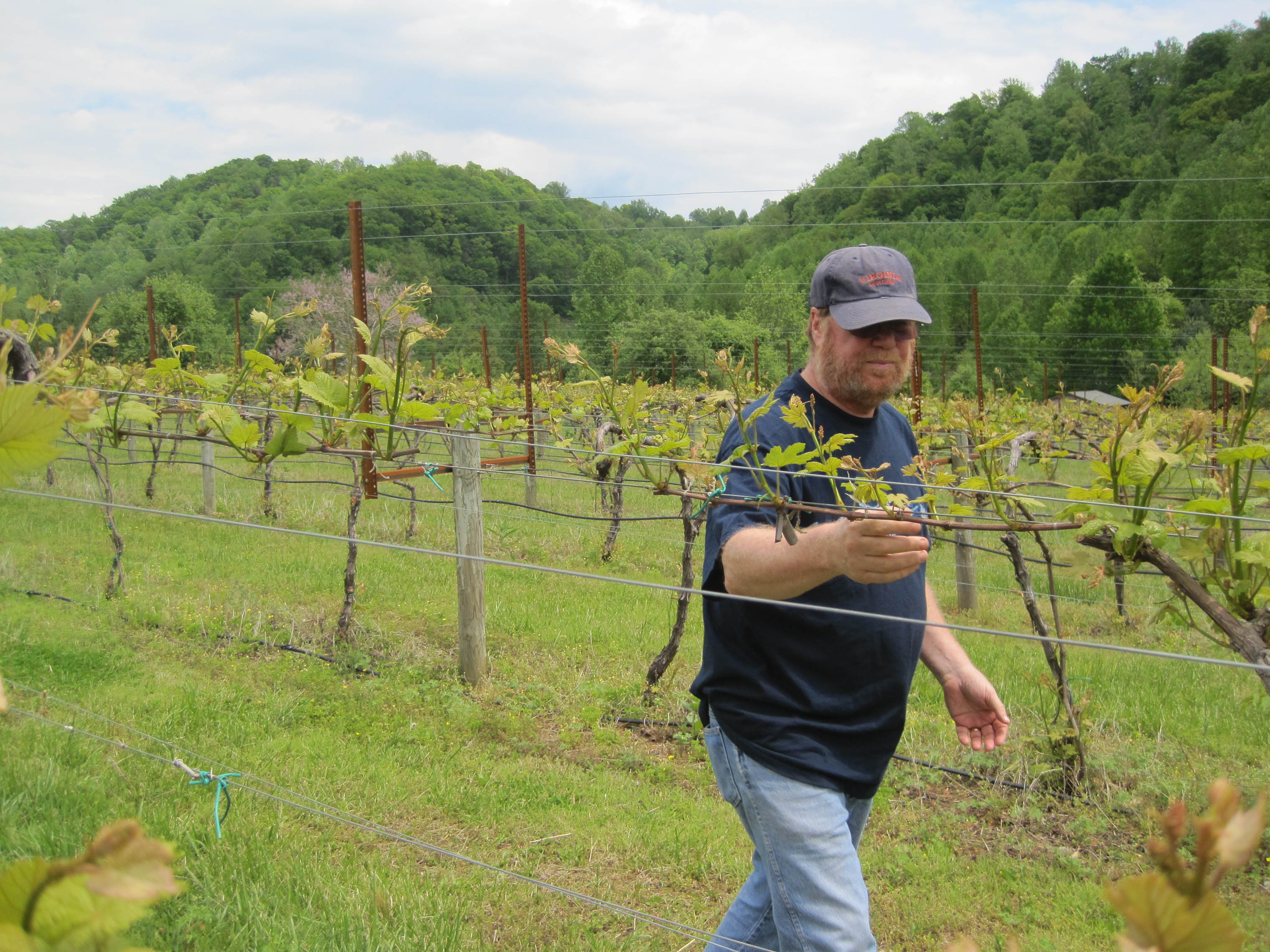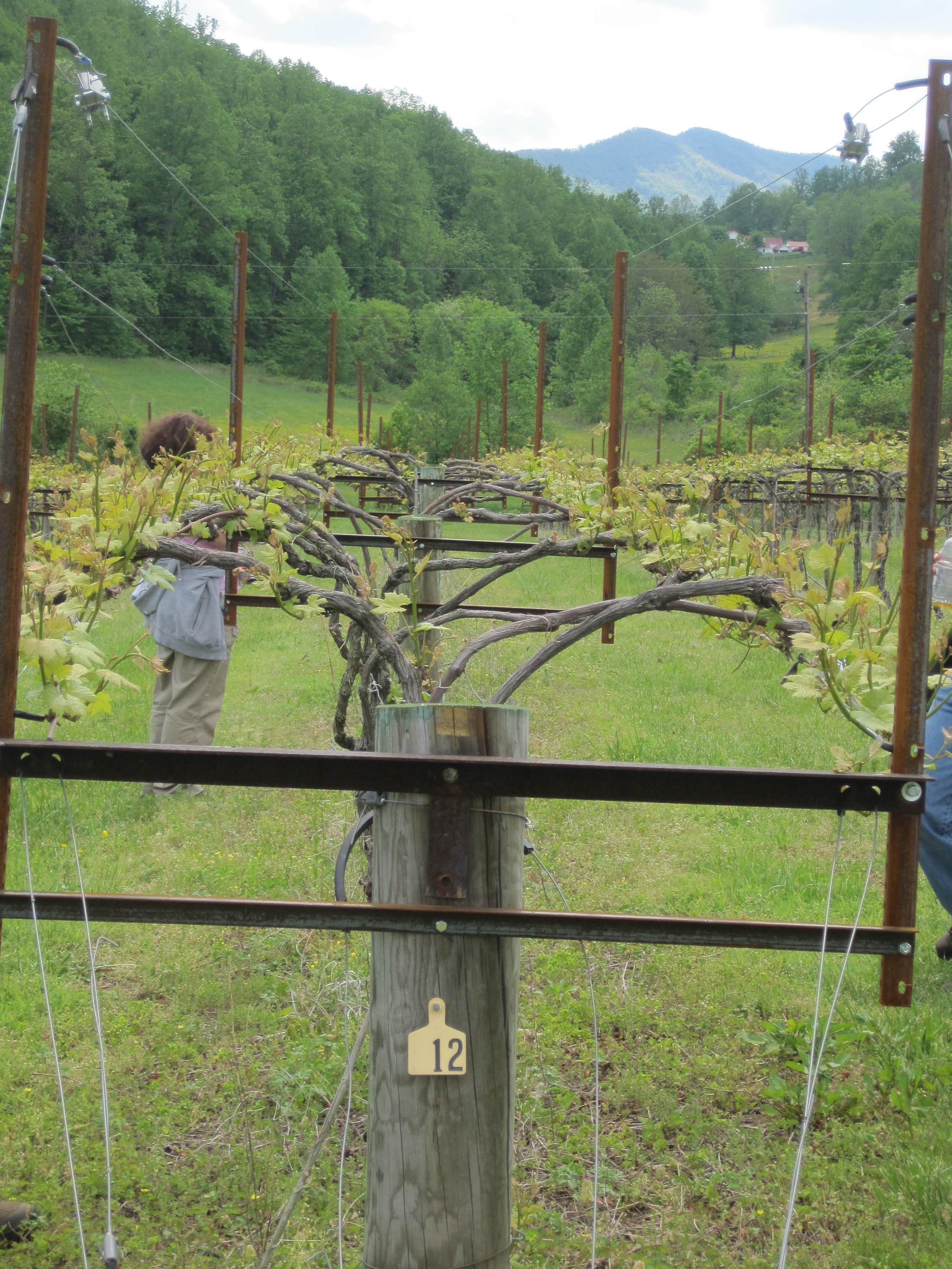 Saturday's vineyard management class was the second of four at DuCard Vineyards, in Etlan, Virginia. We've been working with a section of Norton vines, and we'll be seeing them through until the harvest. Lots of work done is while we're not there (spraying, among other things), but we're doing much (well, some) of the essential work on the vines.