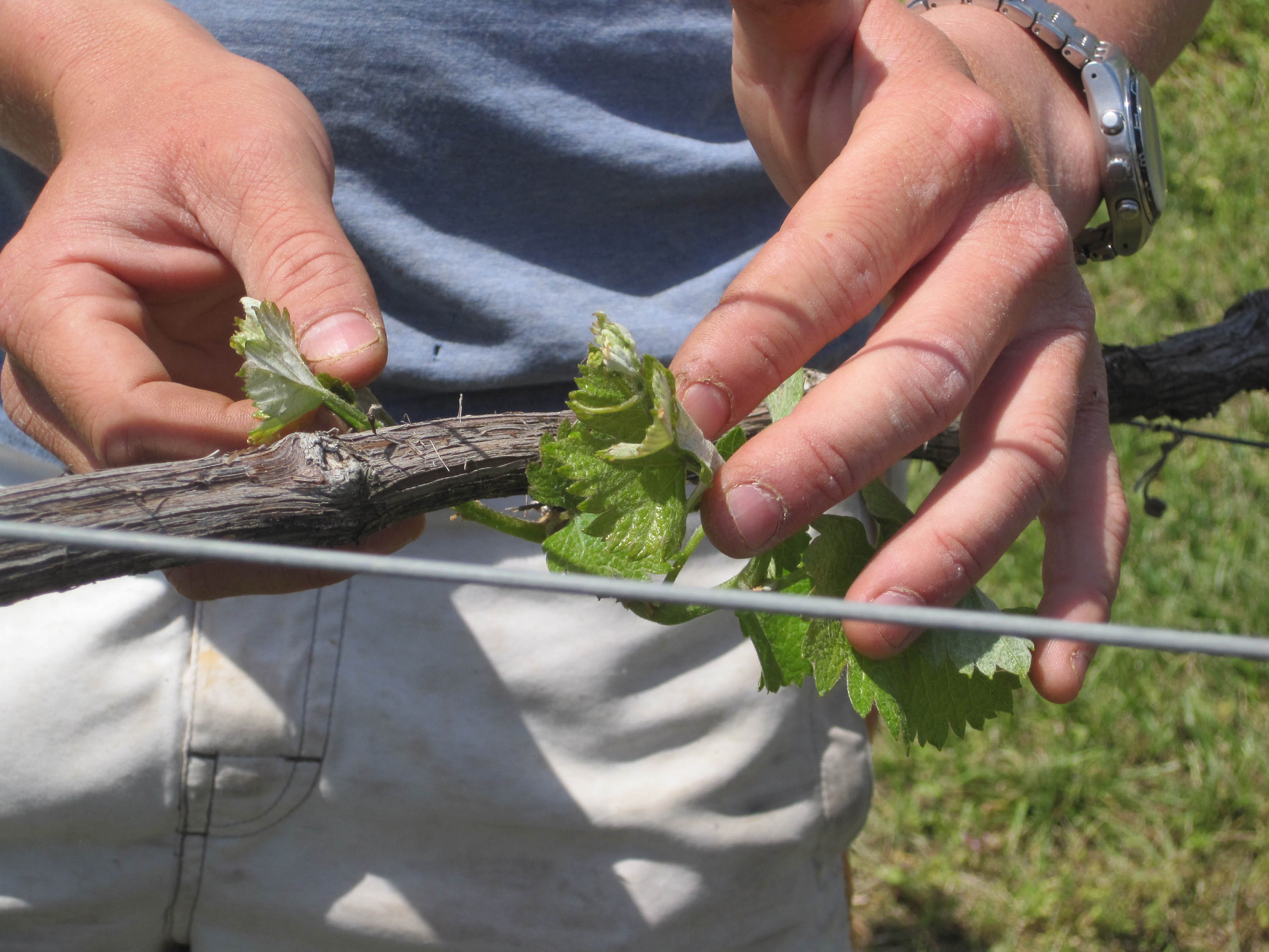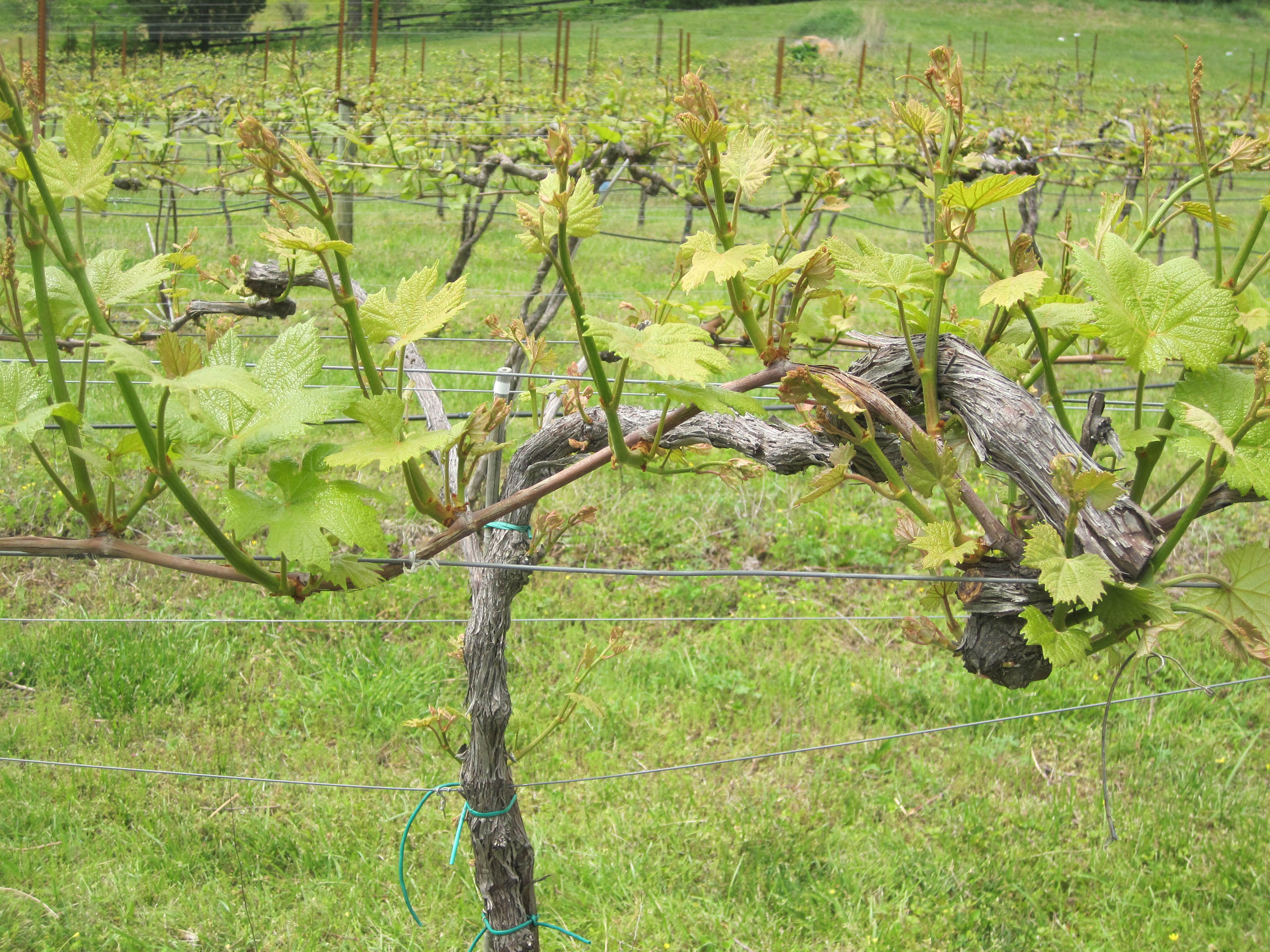 Scott Elliff, the vineyard's owner, has been migrating his vineyard from a Geneva Double Curtain trellising system to a modified Lyre system, so in our first class, we worked on pruning vines to facilitate that transition. Both GDC and Lyre are divided canopy systems in which the trunk of the vine is planted in the middle of two sets of trellis wires about four feet apart. With GDC, the vines grow downward, like a waterfall on each side of the row. With Lyre, they run up. Continue Reading–>